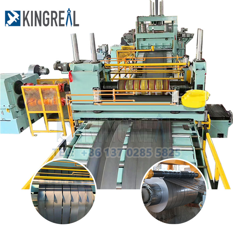 Machine à refendre l'acierest une sorte d'équipement à haut rendement spécialement conçu pour couper longitudinalement de larges bobines de métal en un certain nombre de bandes étroites, qui peut être utilisé pour traiter l'acier, l'aluminium, l'acier inoxydable, le cuivre et d'autres métaux pour le cisaillement longitudinal, et convient aux bobines de différentes épaisseurs selon les besoins de production du client, pour le refendage et l'enroulement final. COUPEUSE D'ACIER KINGREALLigne de coupe de métal populaire à longueur et machine de refendage de bobines de métal.machine de refendage de bobines à double tête de découpe, plein unbobine d'acier automatiquemachine à refendre, gmachine à refendre l'acier alvanisé, machine à refendre en acier inoxydable, tension de la courroiemachine à refendre les bobines, machine de refendage de bobines de gros calibre, etc.